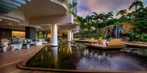 Plush, island-style studios and 1- to 2-bedroom villas come with balconies, kitchenettes, and whirlpool tubs. All offer free Wi-Fi, flat-screen TVs, DVD players and Bose sound systems. Some include dining areas.